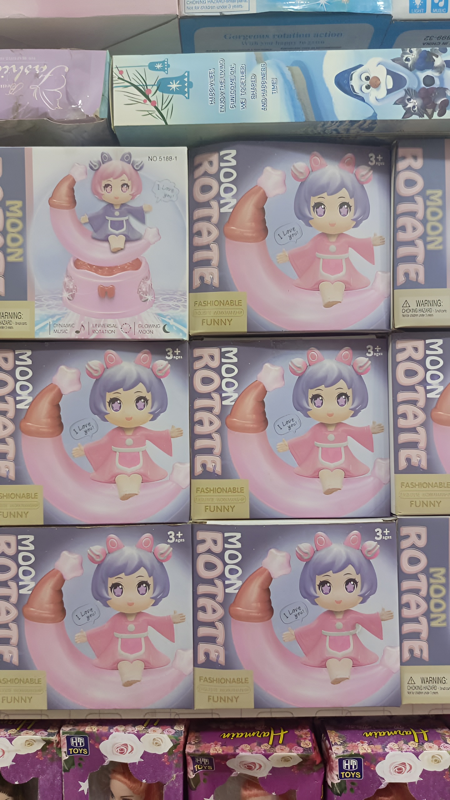 Enchant your child with the Rotate Moon Doll, a delightful rotating moon toy featuring dynamic music and glowing lights! This charming toy includes a cute doll figure seated on a crescent moon that rotates and lights up, adding a magical touch to any playtime. With interactive features like universal rotation and engaging music, this toy captivates young children and enhances their sensory development. Ideal for kids aged 3 and up, it makes a lovely gift that brings joy and wonder to any child’s collection. Features