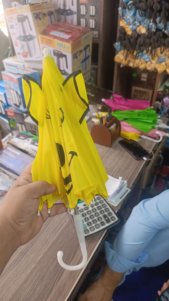 Keep your little ones dry in style with the Small Kids Cartoon Umbrella – featuring fun, colourful designs that kids will love! Each umbrella comes in a random shape/design with attractive colours that make rainy days more cheerful. Made from premium-quality polyester/pongee fabric, this umbrella is lightweight, durable, and easy for kids to carry. The auto-open metal frame with zinc plating ensures smooth operation and long-lasting use, while the comfortable grip handle is perfect for small hands. ✅ Features: Lightweight & easy to handle – perfect for kids aged 4–10 Cute cartoon designs (randomly dispatched) Premium quality fabric: Pongee/Polyester Auto open mechanism with 8-rib design Durable frame made of steel, aluminium alloy, fiberglass, and iron Compact size for easy carrying Specifications: Size: 19 inches, 8 ribs (Frame: 17”×8K) Fabric: Pongee/Polyester Frame: Steel / Aluminium Alloy / Fiberglass / Iron Colours & Designs: Randomly dispatched